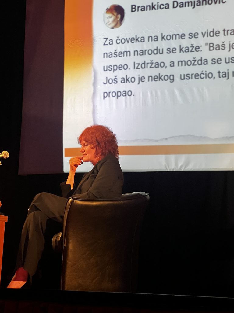 У простору испуњеном пажњом и емоцијом, публика је имала прилику да чује надахнуту и искрену исповест ауторке која је, кроз причу о сопственом животу и стваралаштву, отворила пут дубокој емпатији, разумевању и духовном преображају.